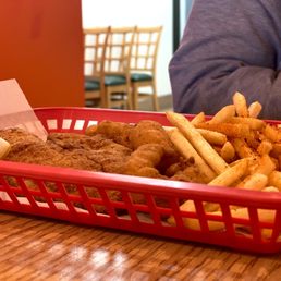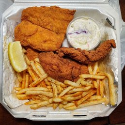 The food was amazing, the batter on the fish and chips was nice and crunchy and the fish was extremely moist. Ive had some fish and chips where the fish was super dry but this one was perfect. The service was awesome we were greeted right away and theres a sit down option to be serviced or a take out we were checked up on multiple times and the wait time for when we ordered and received our food was quick ! In the restaurant theres sea decor so its super cute I'm surprised it doesn't get busy in here ! The price of our plates were $18 (rounded up) But if you want a two piece you can get it for ($15) and you get the choice of cod, tilapia, catfish, or haddock.